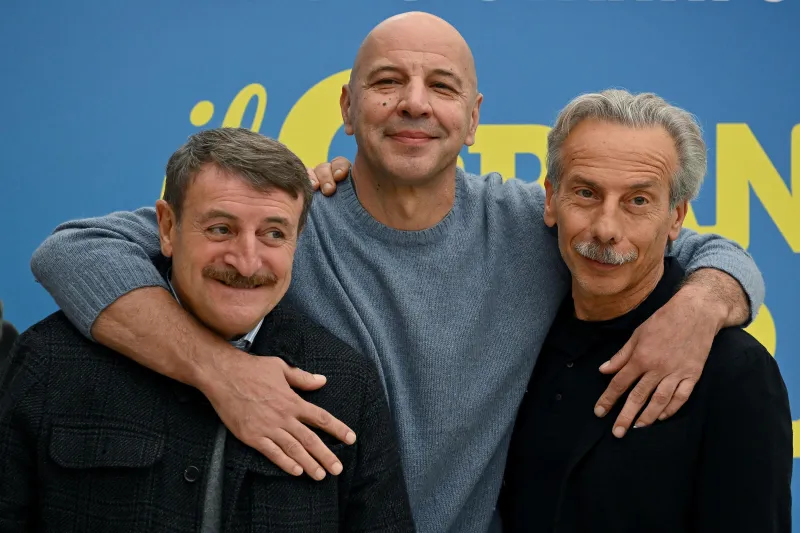 Giacomo Poretti (S), Aldo Baglio (C) e Giovanni Storti durante il photocall del film ''Il Grande Giorno'', Roma, dicembre 2022