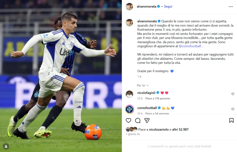 La stagione di Álvaro Morata si complica ulteriormente a causa di un nuovo problema fisico che lo ha costretto a fermarsi durante il primo tempo della sfida tra Inter e Como.