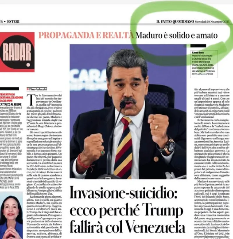 E infatti, Maduro resistette al governo e per il Venezuela tutto tornò rose e fiori. Come del resto ha testimoniato il Fatto Quotidiano con questa pagina del novembre scorso che da giorni circola sui social