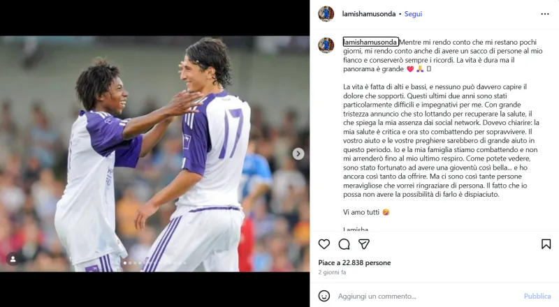 Nei suoi post sui social, Musonda ha espresso con grande dignità e lucidità il peso della malattia. Ha parlato dell’importanza delle persone care che gli sono accanto, dei ricordi preziosi che custodirà e della forza che cerca di mantenere fino all’ultimo giorno. Le sue parole, seppur tristi, trasmettono un senso di coraggio e resilienza che ha commosso il mondo sportivo.