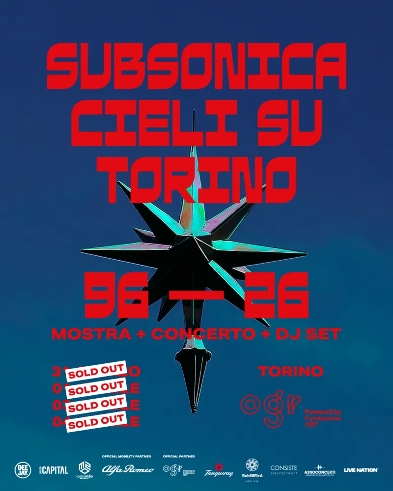 I quattro concerti alle OGR Torino per il trentennale di Subsonica (1996-2026) sono già sold out purtroppo. Ogni serata sarà unica: una scaletta diversa con parentesi storiche(da “Microchip Emozionale” a “Mentale Strumentale”), l’accesso a una mostra antologica nel Duomo delle OGR, tra foto, memorabilia, costumi e strumenti, e infine, il DJ set finale con i Subsonica in consolle.