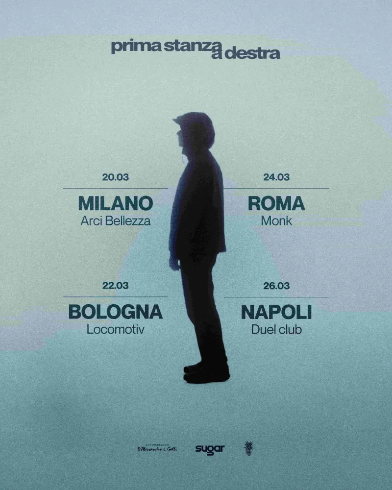 Il tour 2026 di prima stanza a destra nei club italiani sta già facendo impazzire i fan: la curiosità di partecipare alle date in programma non fa che crescere, con la complicità dell’uscita dell’ultimo EP, “la ragazza che suonava il piano”, e al sound magnetico tra elettronica e pop che caratterizza l’artista.