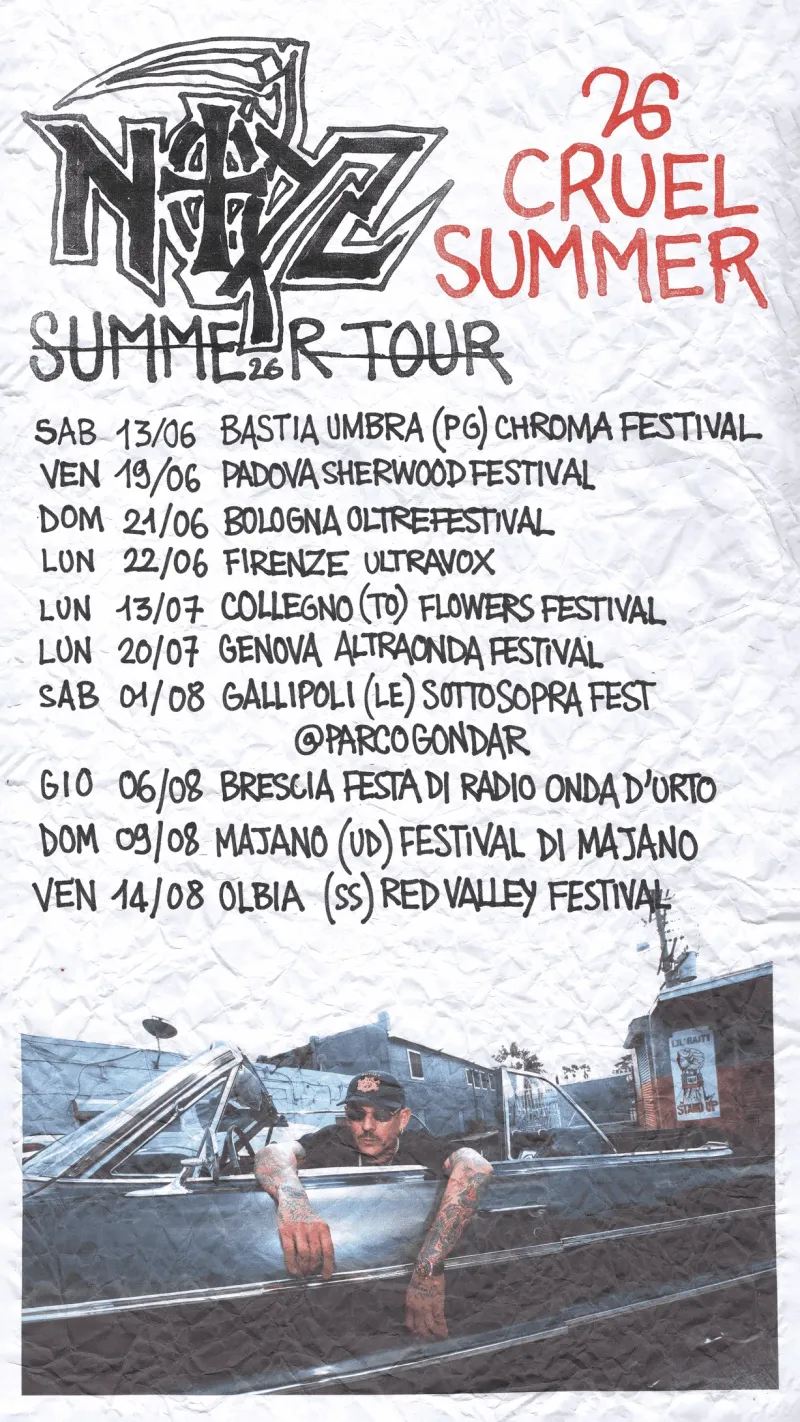 Pronti per un'estate di fuoco? Noyz Narcos, il re dell'hip hop hardcore italiano, tornerà a incendiare i palchi italiani a colpi di barre affilate con il suo "Cruel Summer tour 2026", una tournée estiva che lo vedrà protagonista tra i festival più in voga d’Italia.