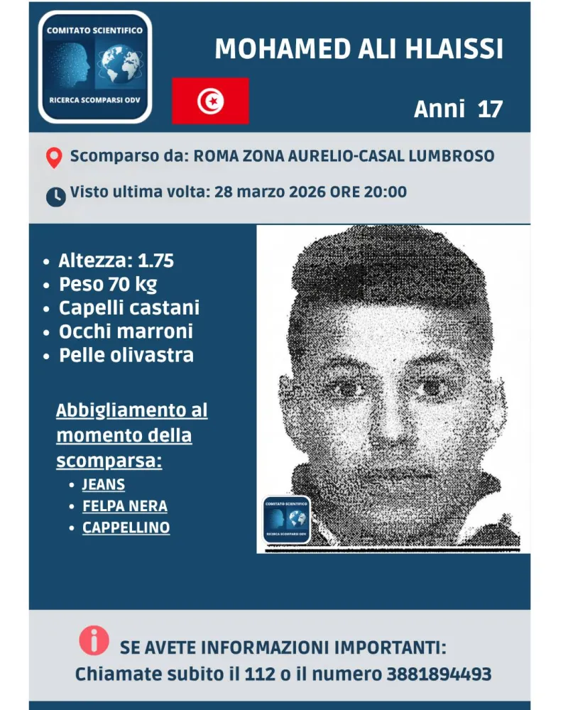 Tiene alta l’attenzione a Roma il caso di Mohamed Ali Hlaissi, il ragazzo di 17 anni di cui si sono perse le tracce nella serata del 28 marzo 2026 dopo l’allontanamento da una struttura situata tra Aurelio e Casal Lumbroso.