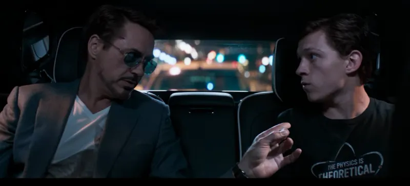 Robert Downey Jr e Tom Holland in Spider-Man Homecoming. Immagine estratta direttamente dal trailer Marvel Italia