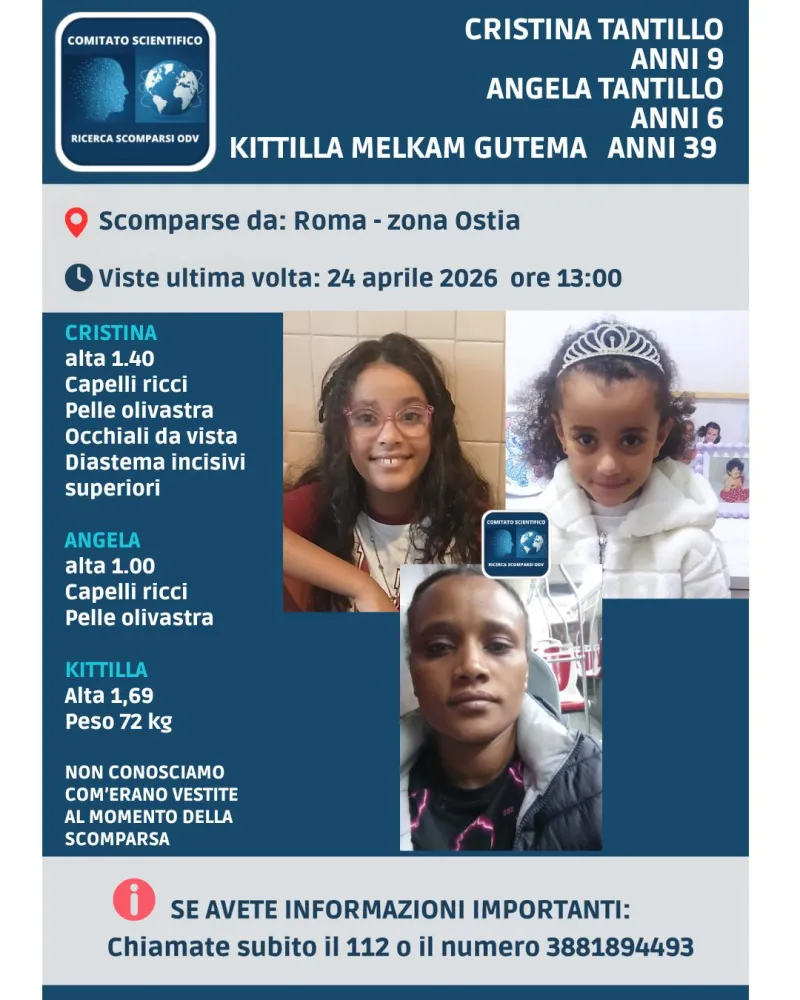«Possiamo confermare che Kittilla Melkam Gutema si è allontanata da Ostia, in zona Fiamme Gialle, nella giornata di venerdì 24 aprile 2026, dopo aver prelevato le figlie all’uscita da scuola», spiegano dal Comitato.
