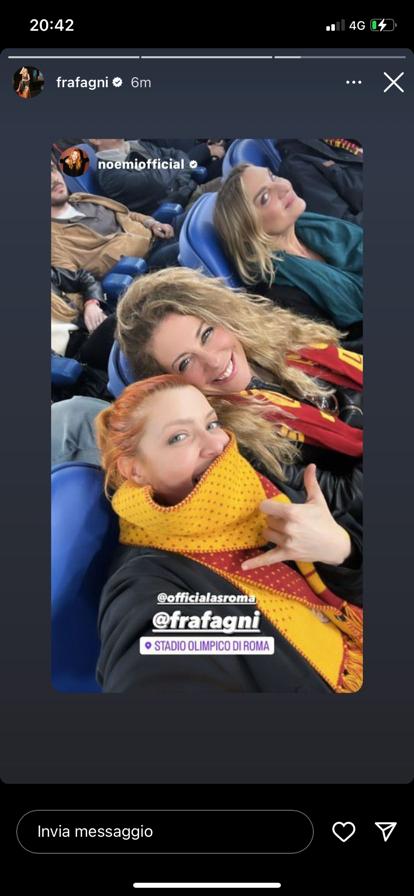 Francesca Fagnani e Noemi allo stadio per Roma - Sampdoria, tifose speciali sulle tribune dell'Olimpico. La cantante non ha mai nascosto la sua passione per i colori giallorossi, mostrata in occasione della finale di Conference League e ribadita cantando prima del match tra la Roma Femminile e il Barcellona in Champions League. Questa sera invece con la sua inseparabile sciarpetta al collo si è concessa uno scatto insieme all' amica Francesca Fagnani, anche lei una giallorossa DOC. Le due hanno portato bene alla squadra di Mourinho, che ha trionfato con un roboante 3-0.