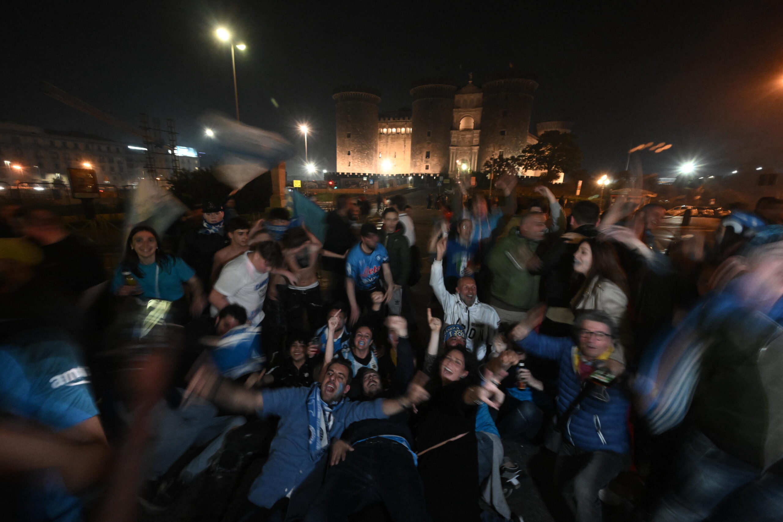 Tifosi in ogni parte della città, fuochi di artificio anche se vietati e tantissime immagini iconiche destinate a rimanere nella storia del calcio italiano e nella memoria degli azzurri. Al fischio finale di Udinese-Napoli parte il tripudio, alla Dacia Arena c'è stata un'invasione di campo e il gruppo azzurro è stato circondato dai tifosi. A Napoli si festeggia ovunque: dal centro storico fino allo stadio Maradona, per le strade sono tantissime le persone che si riversano dalle case. Tripudio anche negli spogl