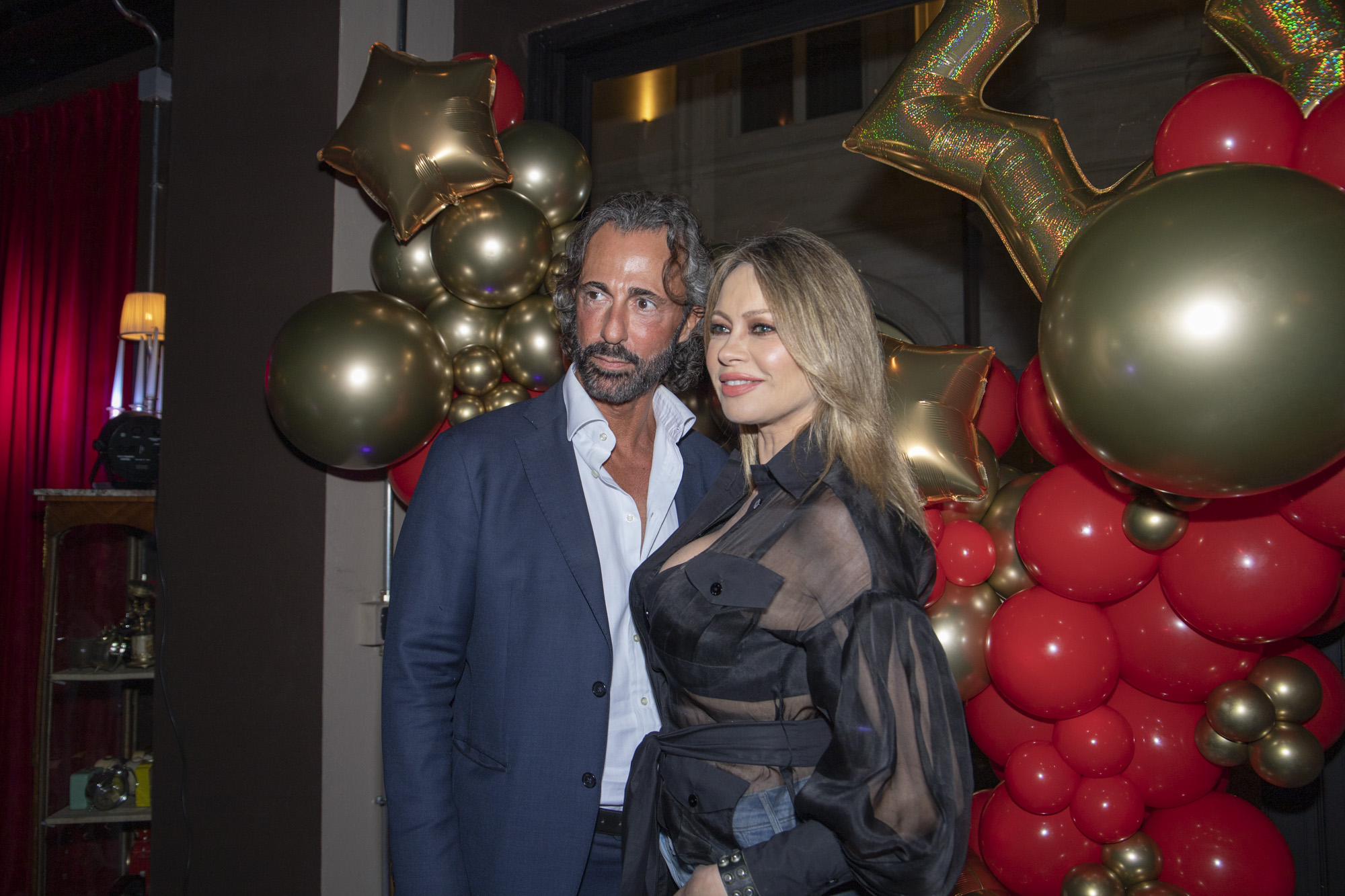 La showgirl ha fatto il suo ingresso sotto una pioggia di flash dei paparazzi. E anche sotto l'occhio attento di Enrico Lucci per Striscia la Notizia, come visto nel servizio del tg satirico andato in onda lunedì 15 maggio su Canale 5. Strizzata in abito lungo rosso sexy si è lasciata andare a sorrisi e baci ai presenti. La festa è stata organizzata da Antonello Lauretti e Lauretti Communication. Ad animare il party sono stati il dj Stefano Coco e il cantante Agostino Penna.