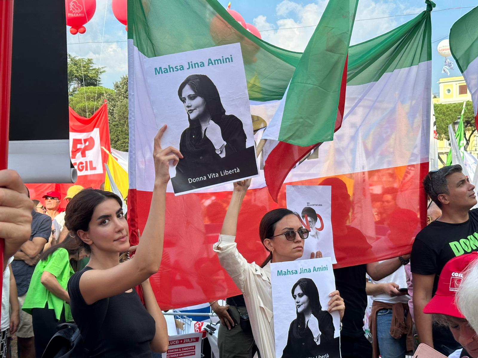 Militanti, membri di associazioni come l'Anpi o dei collettivi studenteschi, foto con il volto di Mahsa Amini, la 22enne uccisa dalla polizia iraniana il 16 settembre 2022 perché non indossava in modo adeguato il suo velo, esponenti di partito e bandiere del sindacato. E, soprattutto, tantissima gente comune.