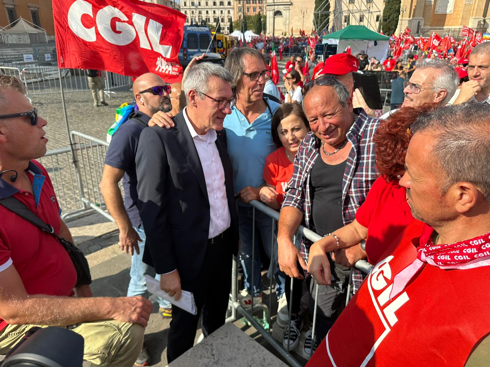 Anche Sergio Cofferati, ex segretario della Cgil, si è unito al corteo della Cgil, arrivando a piazza San Giovanni.