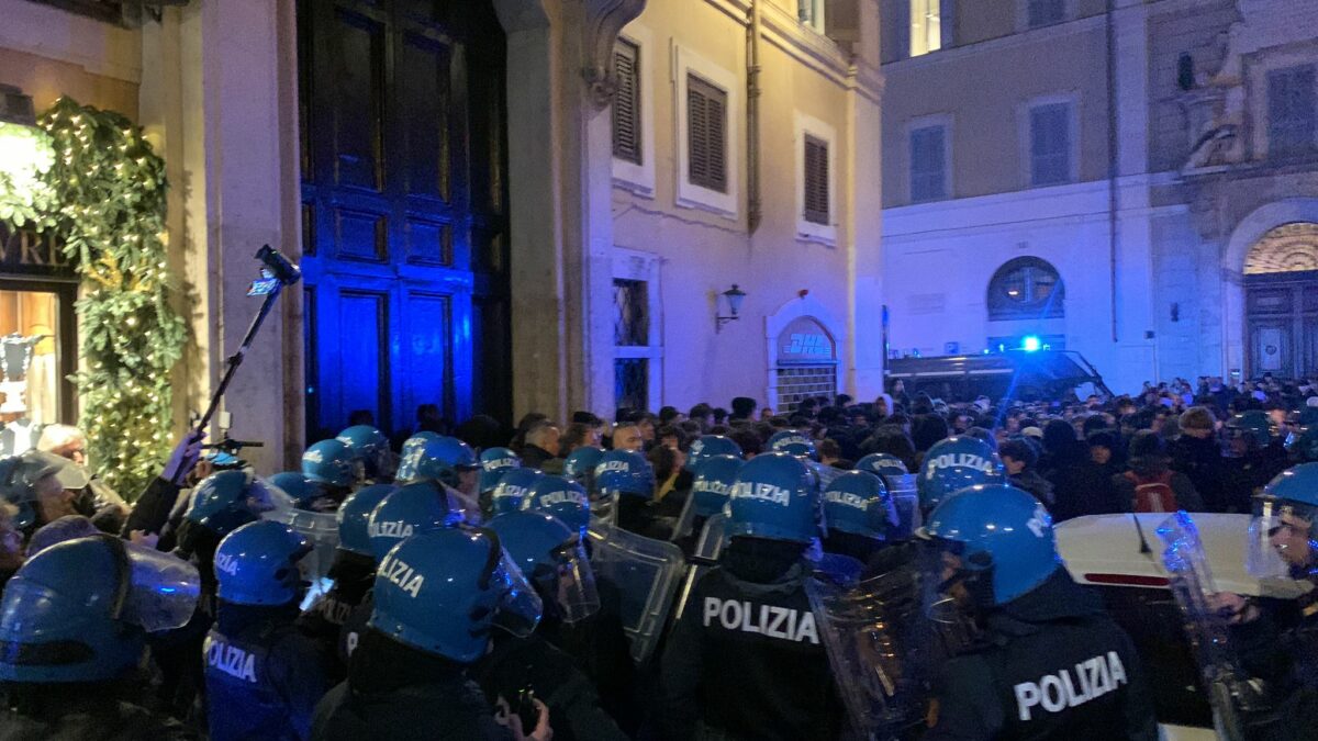 Si erano dati appuntamento al Pantheon. Una manifestazione non autorizzata, secondo la polizia, in cui si sono registrati attimi di forte tensione. Gli agenti, in tenuta antisommossa, hanno caricato il corteo che stava cercando di superare la barriera eretta all'angolo tra piazza Montecitorio e via della Colonna Antonina.